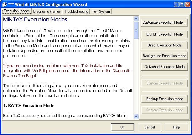 6. Rechts auf "TeX Configuration Wizard ..." klicken und das folgende Menü erscheint: